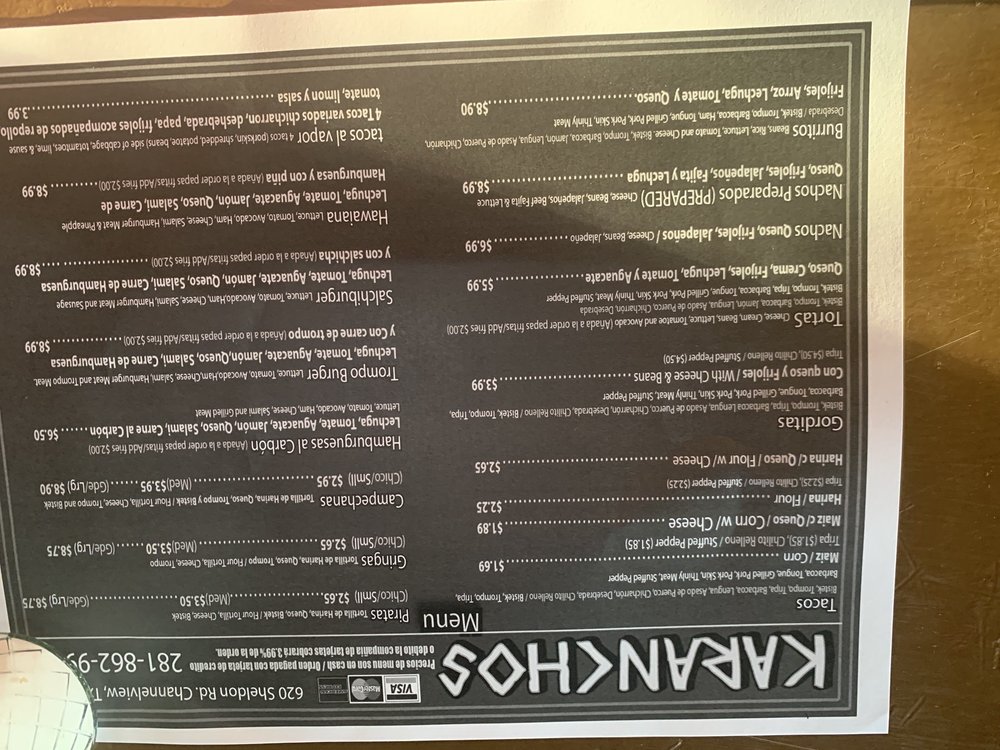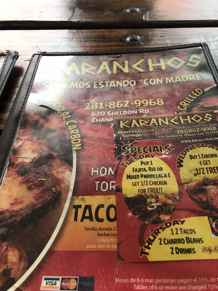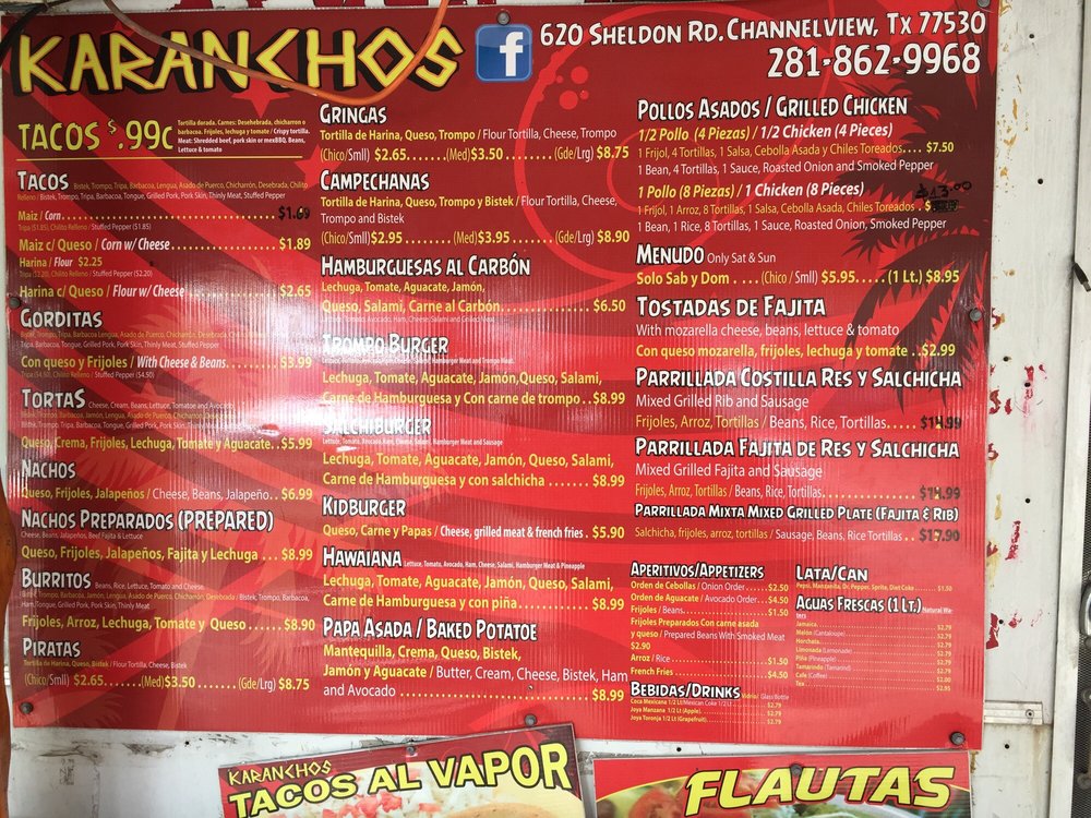 Karanchos, a Mexican restaurant located in Channelview, TX, offers a diverse menu of grilled specialties. From juicy Pollos Asados to flavorful Hamburguesas Al Carbon, everything is cooked to perfection. The Todo Al Carbon, Campechanas, Gorditas, and Gringas showcase the authentic flavors of Mexico. Pair your meal with a refreshing drink like Horchata Fresca or a Mexican Coca Cola. Customers rave about the delicious tacos and unbeatable prices, with special deals like 5 tacos for 5 bucks. The relaxed atmosphere with outdoor seating and TV screens make it a great spot to enjoy a meal with friends or family. While some dishes may not meet the standards of street tacos in Mexico, Karanchos offers a decent alternative for authentic Mexican cuisine. Overall, this restaurant is a must-visit for those craving flavorful and affordable Mexican dishes.